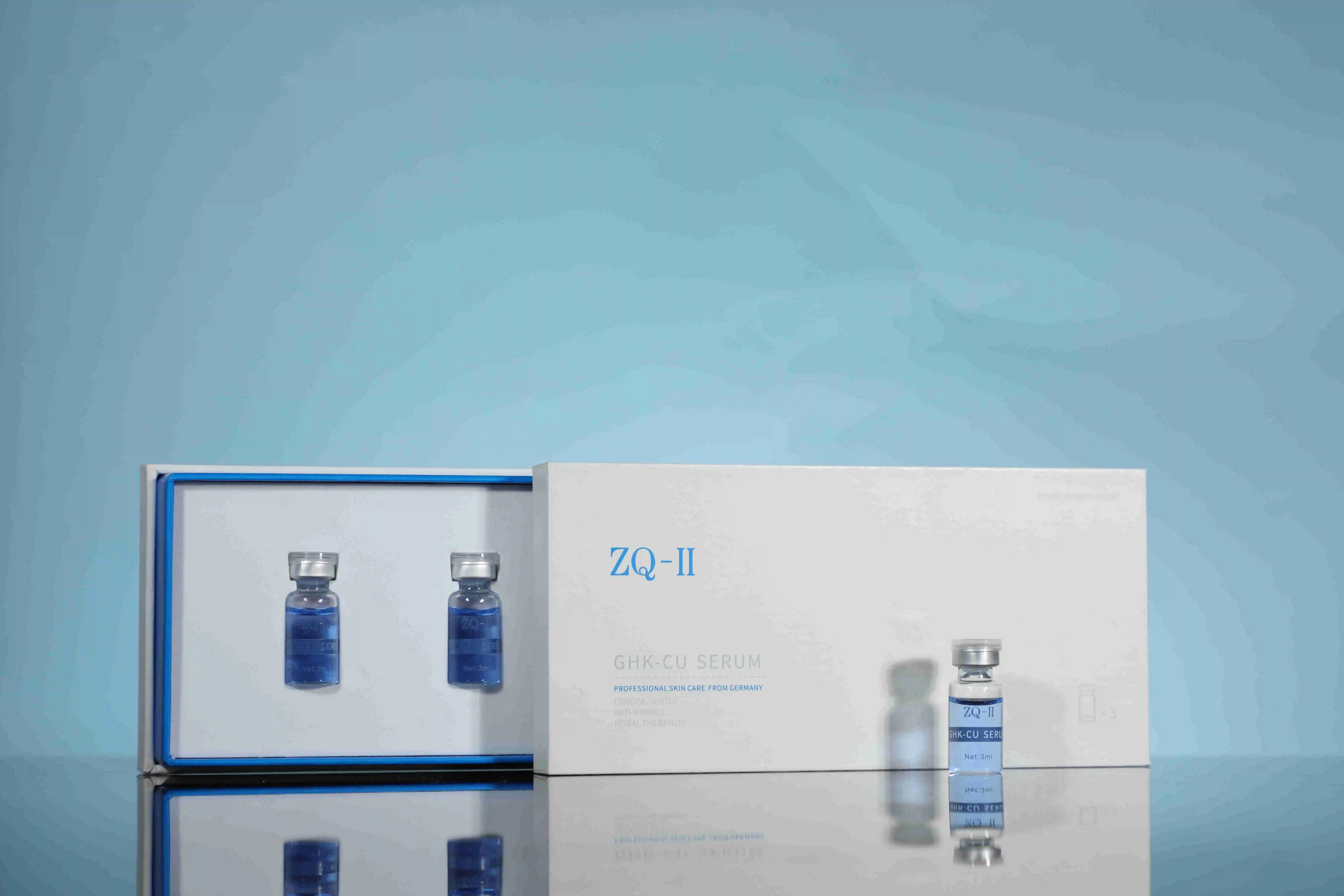 In addition, the highly purified hyaluronic acid in the serum deeply hydrates, reduces puffiness and restores elasticity. It retains 500 times its weight in water to plump and smooth the under-eye area while promoting cell repair and a brighter complexion. Suitable for all skin types and seasons, ZQ-II GHK-CU Serum revitalizes the eye area for a firmer, brighter, more youthful appearance.